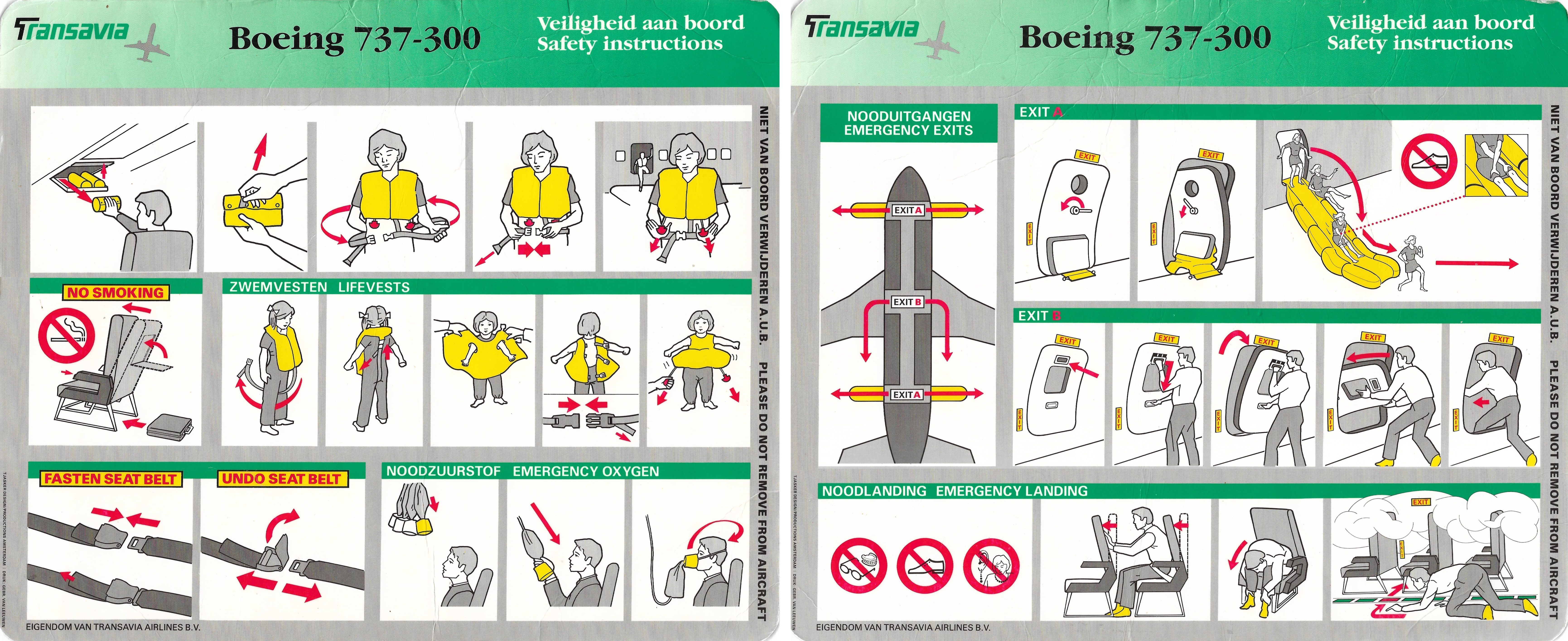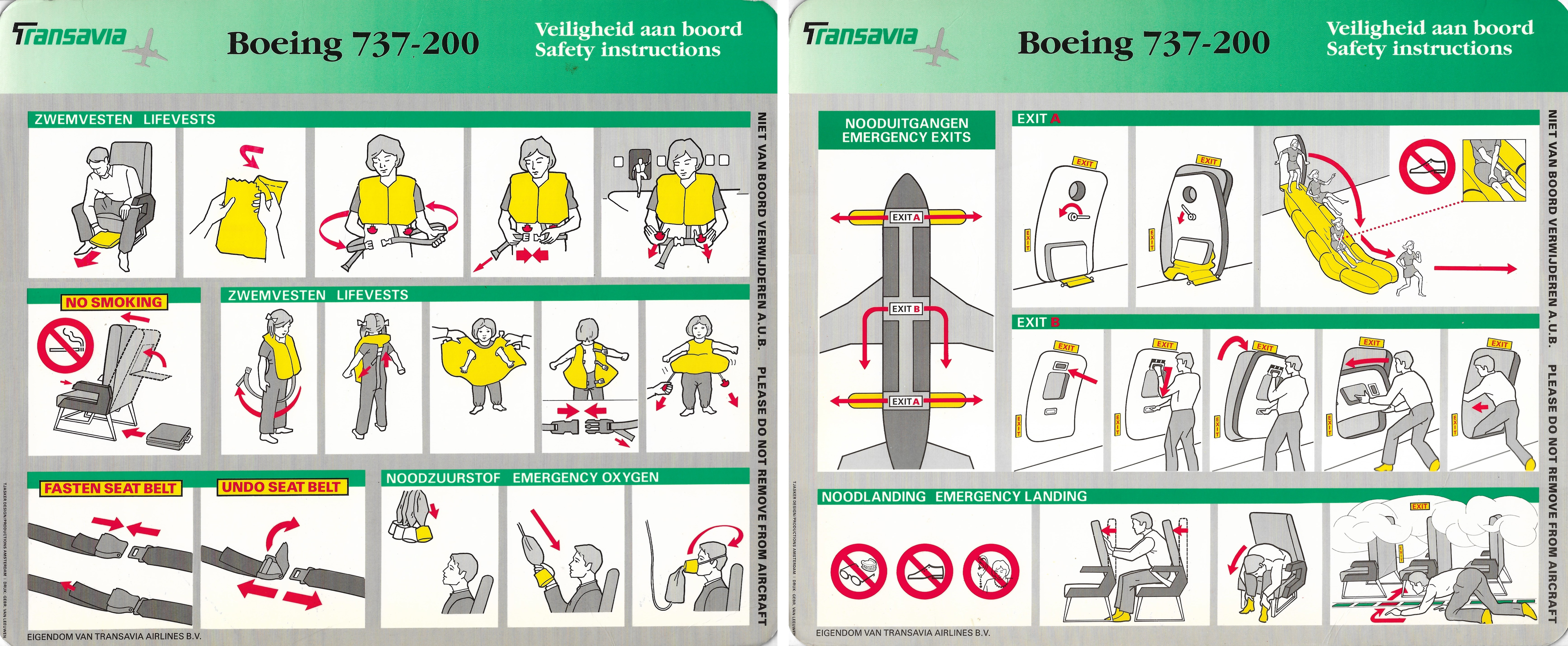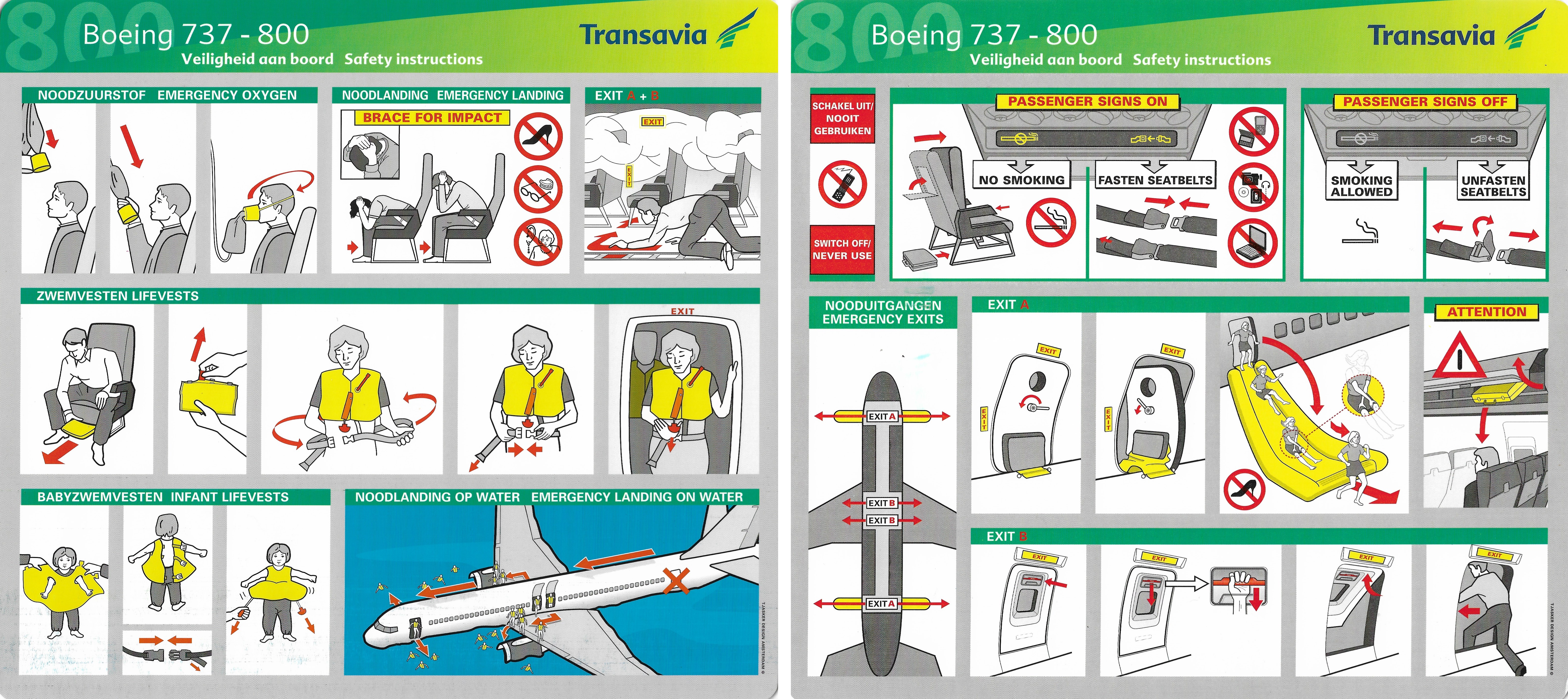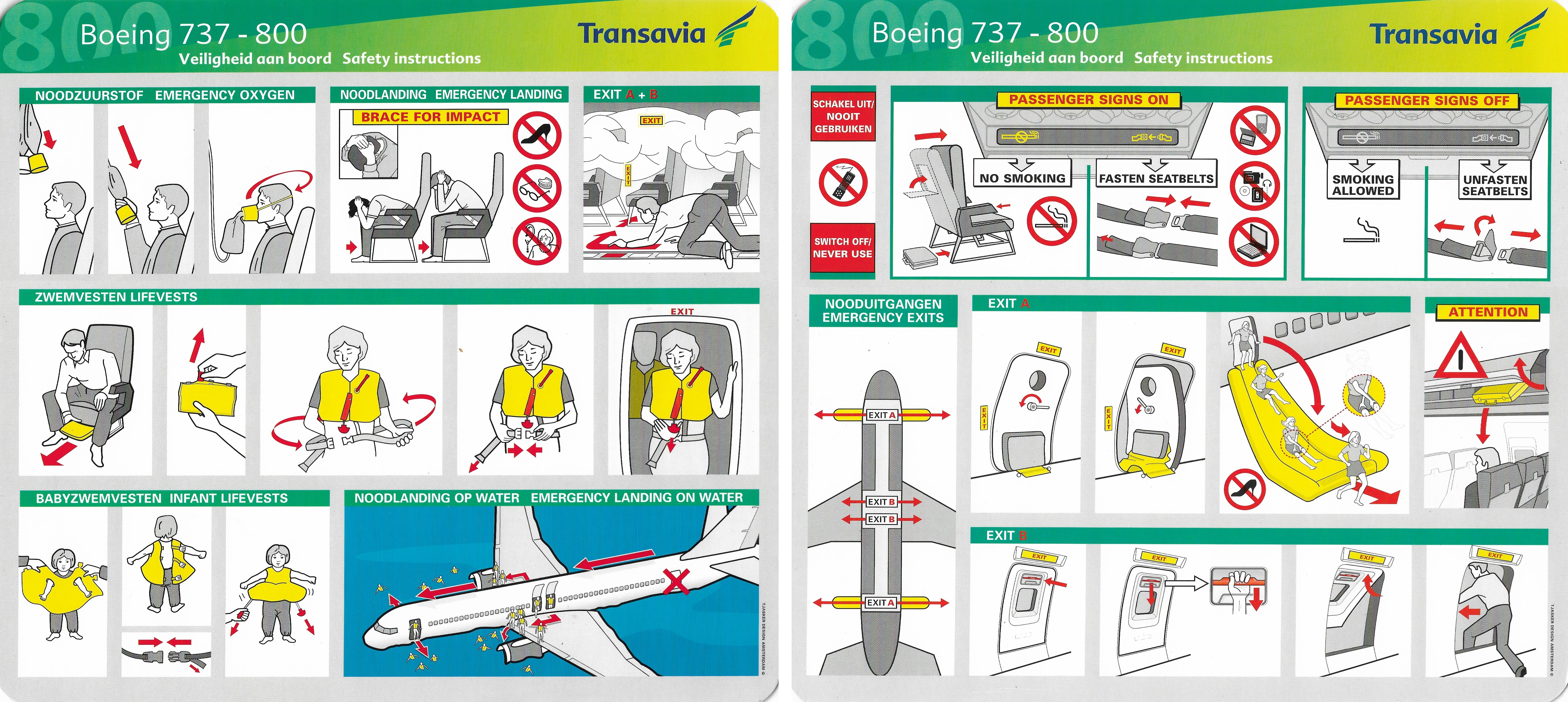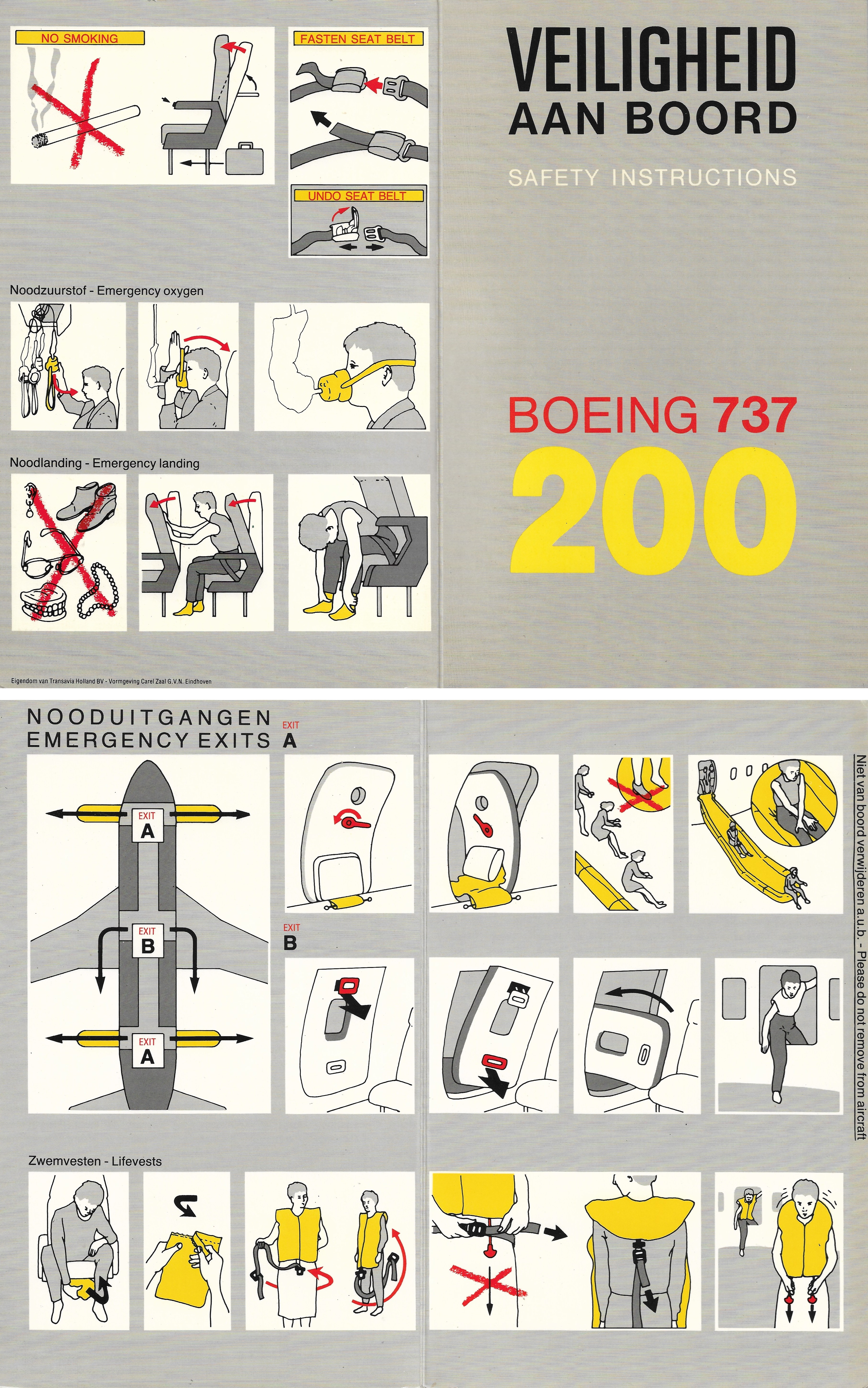 Remarks: NOODUITGANGEN / EMERGENCY EXITS / NOT AUSSTIEGE, Special briefing: Overwing exit hatches