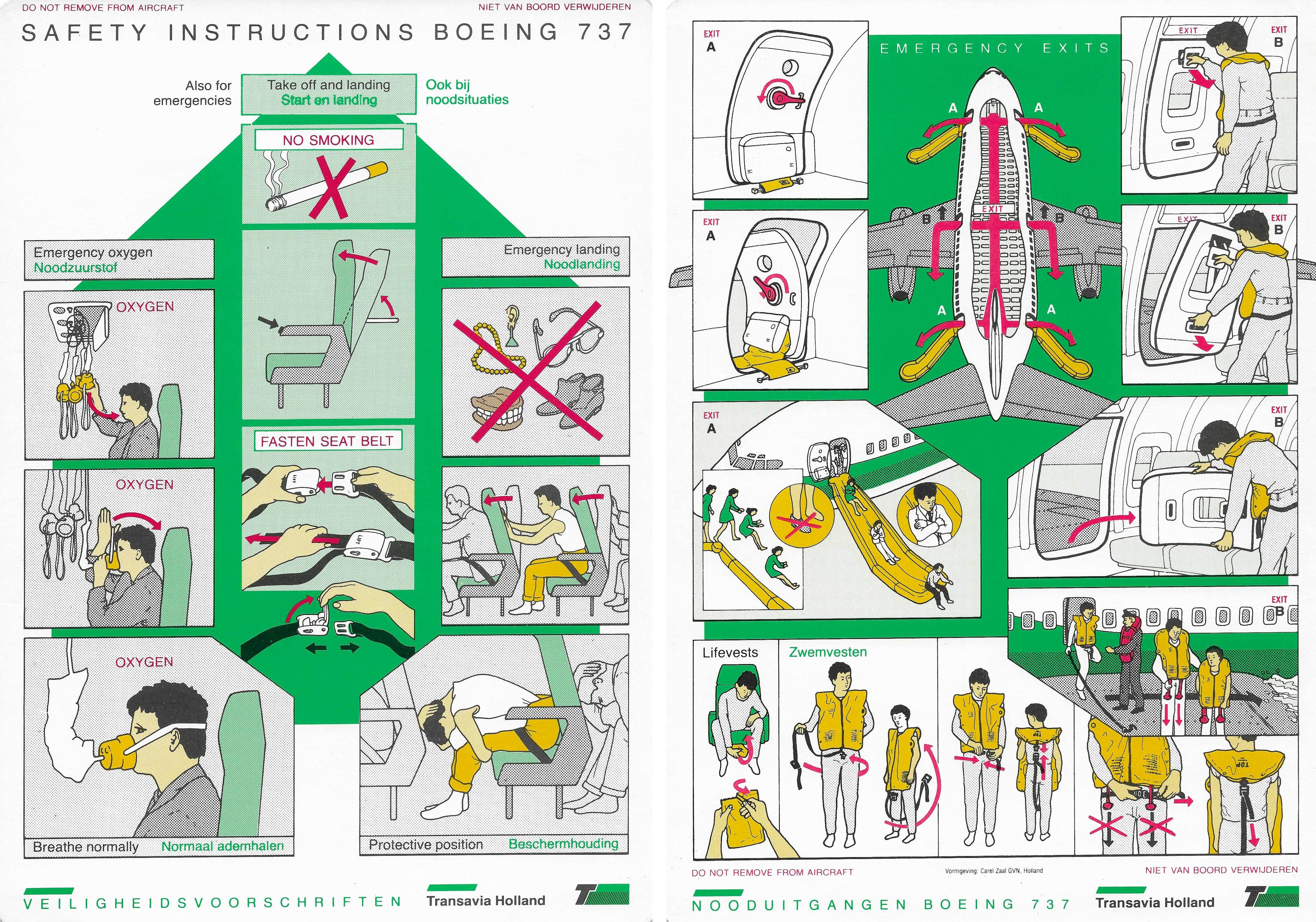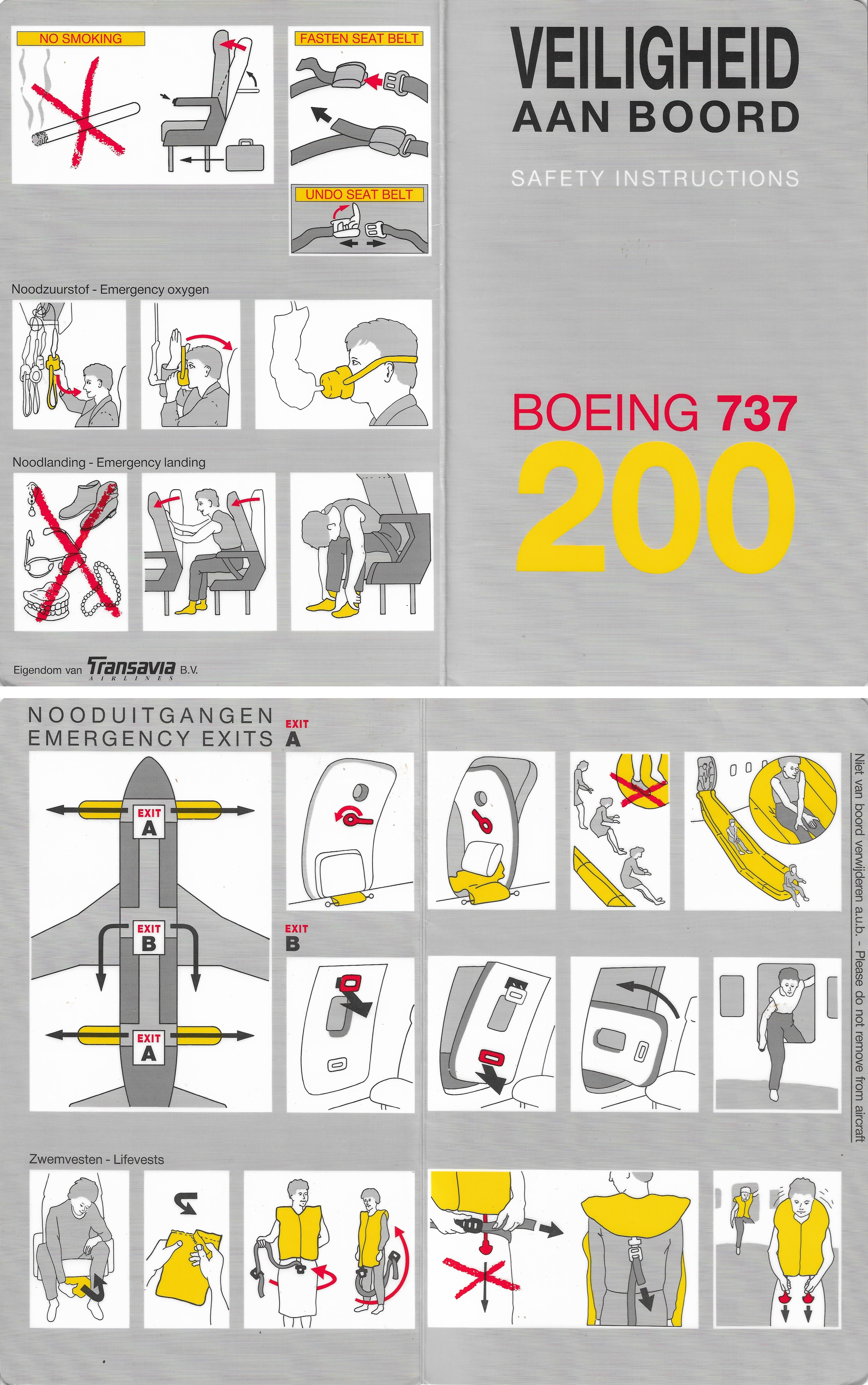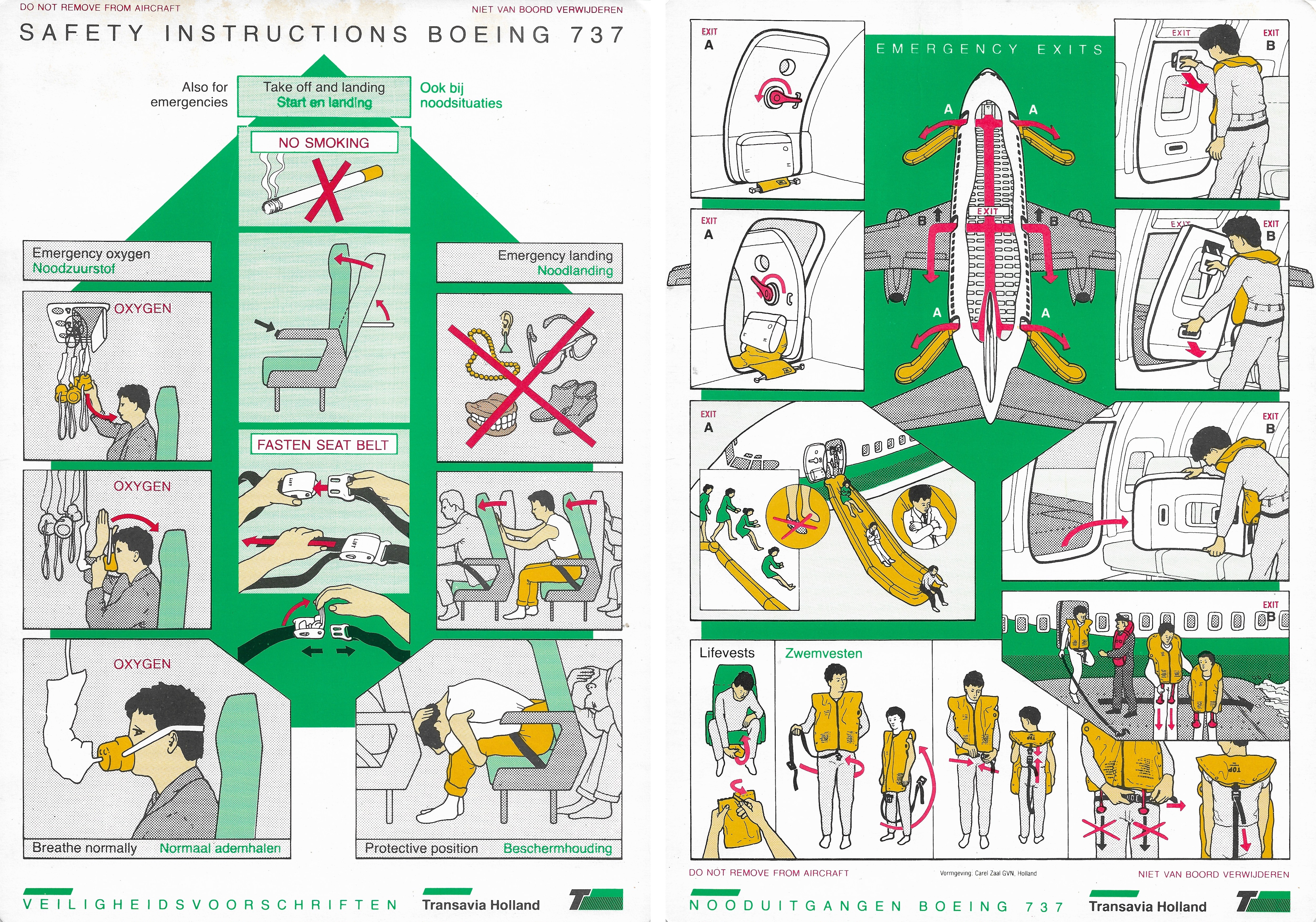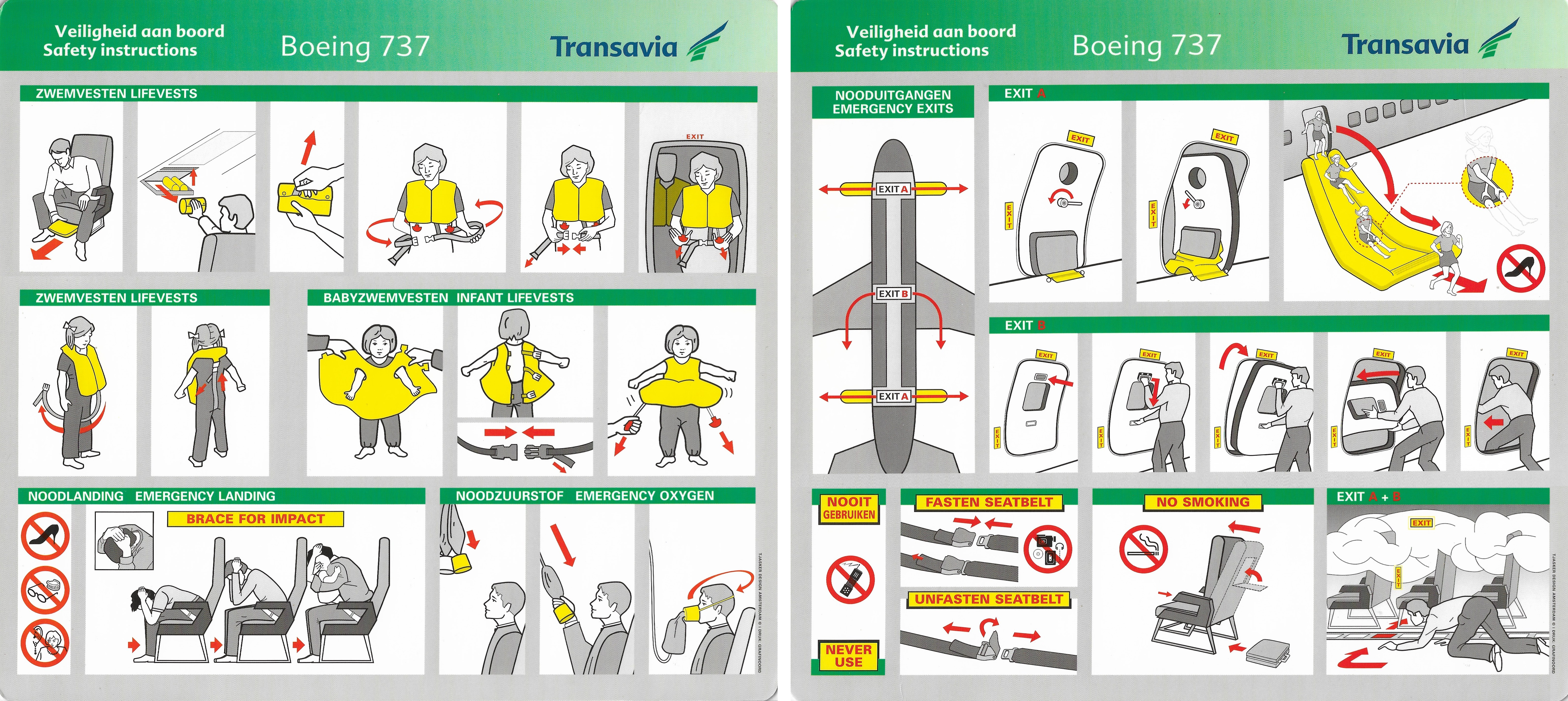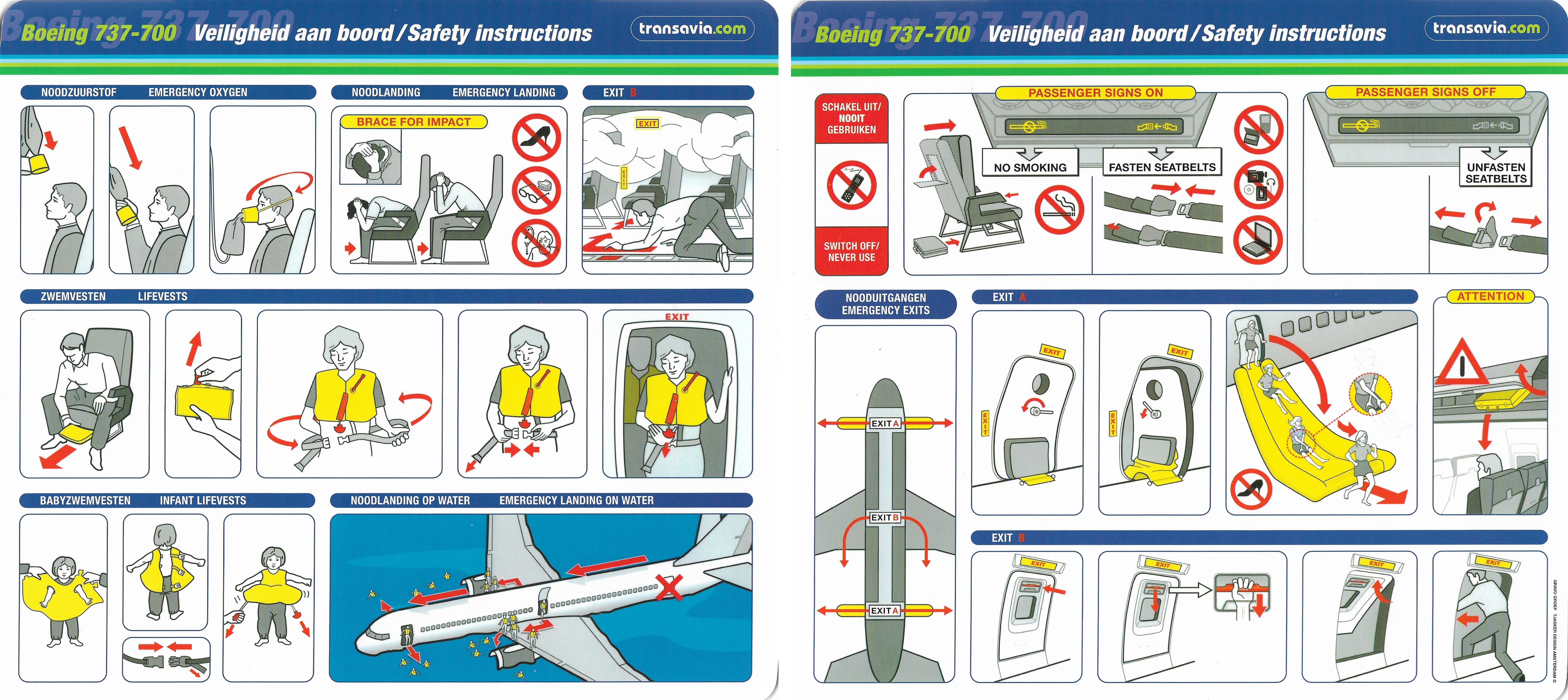 Remarks: NOODUITGANGEN / EMERGENCY EXITS / NOT AUSSTIEGE, Special briefing: Overwing exit hatches