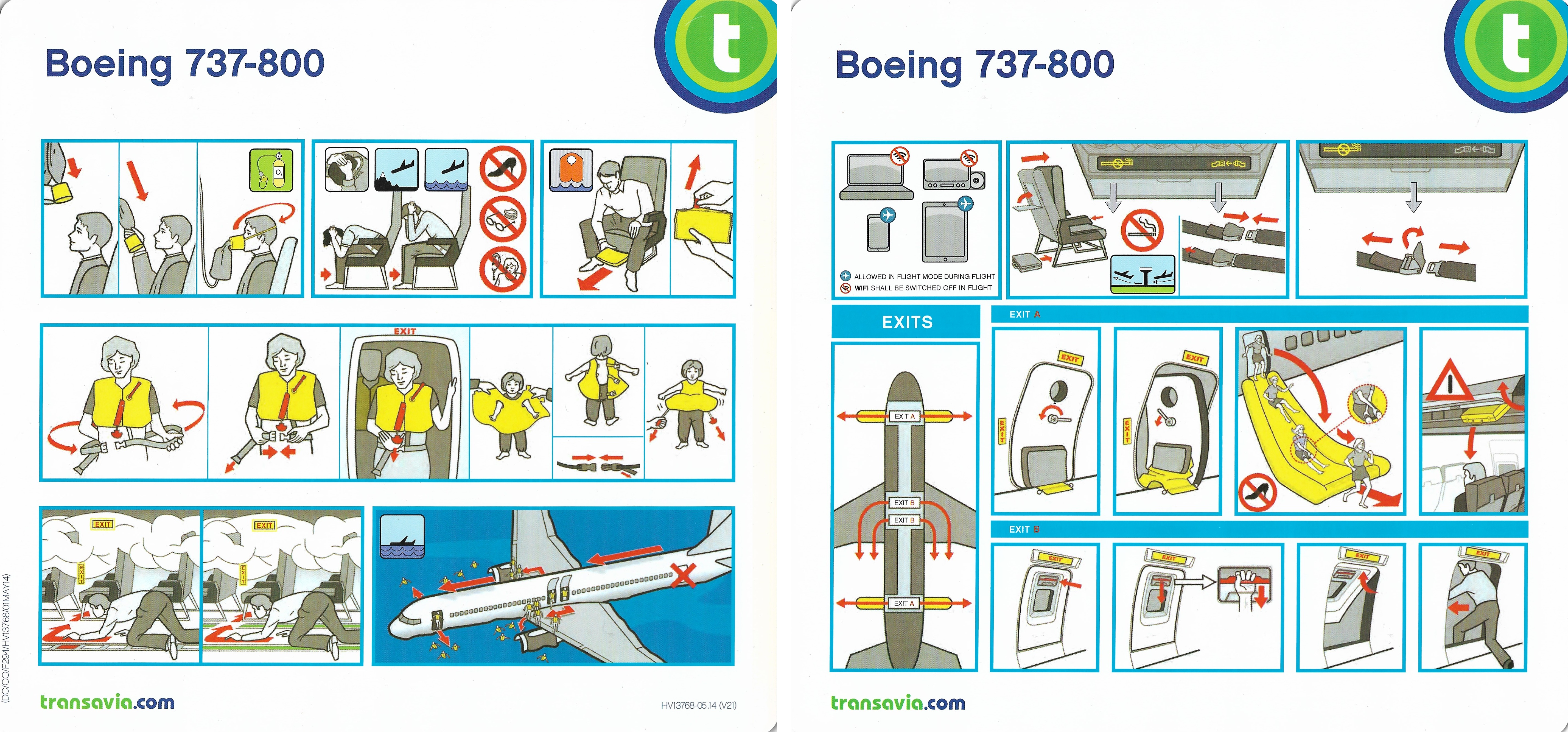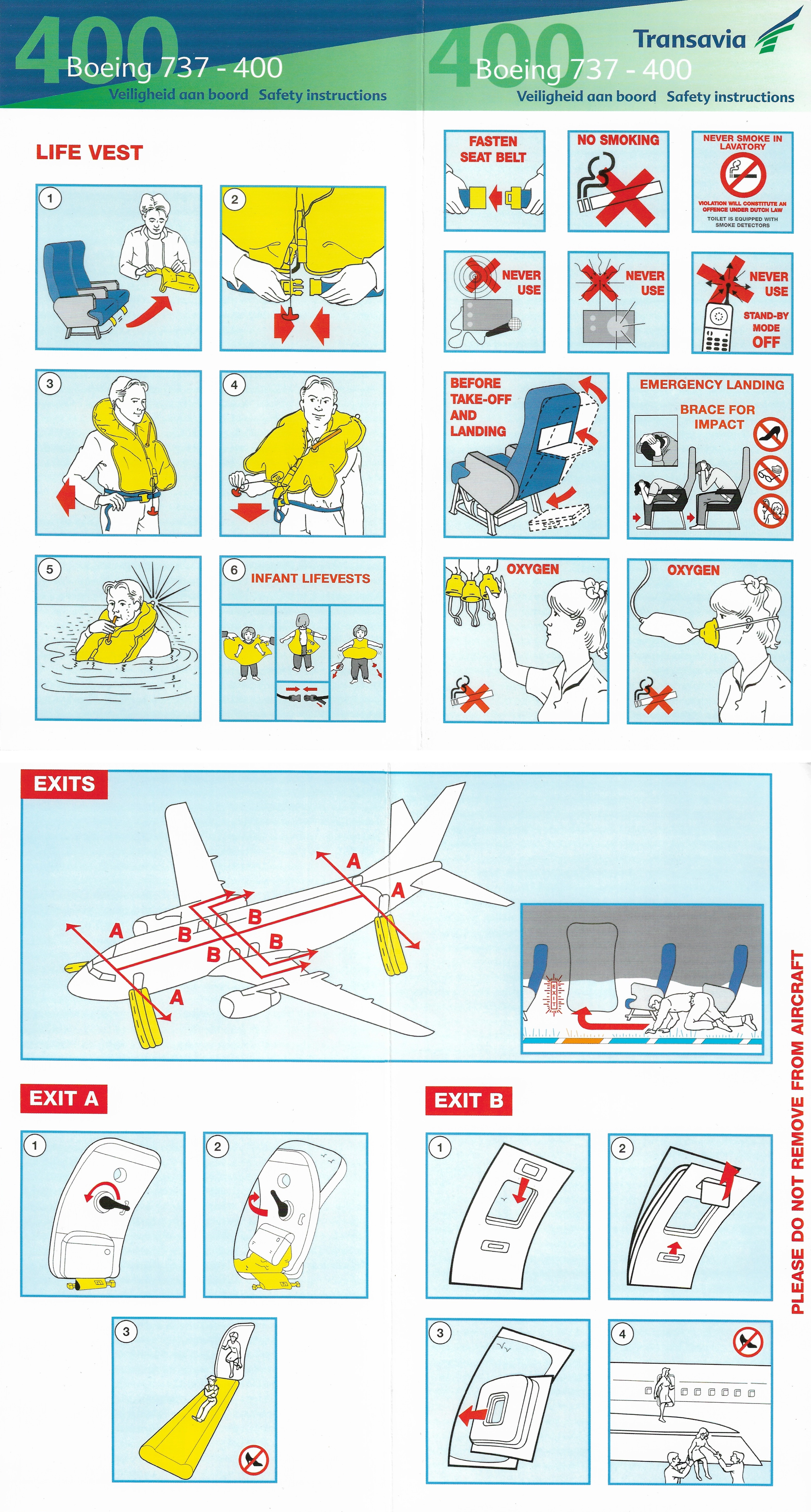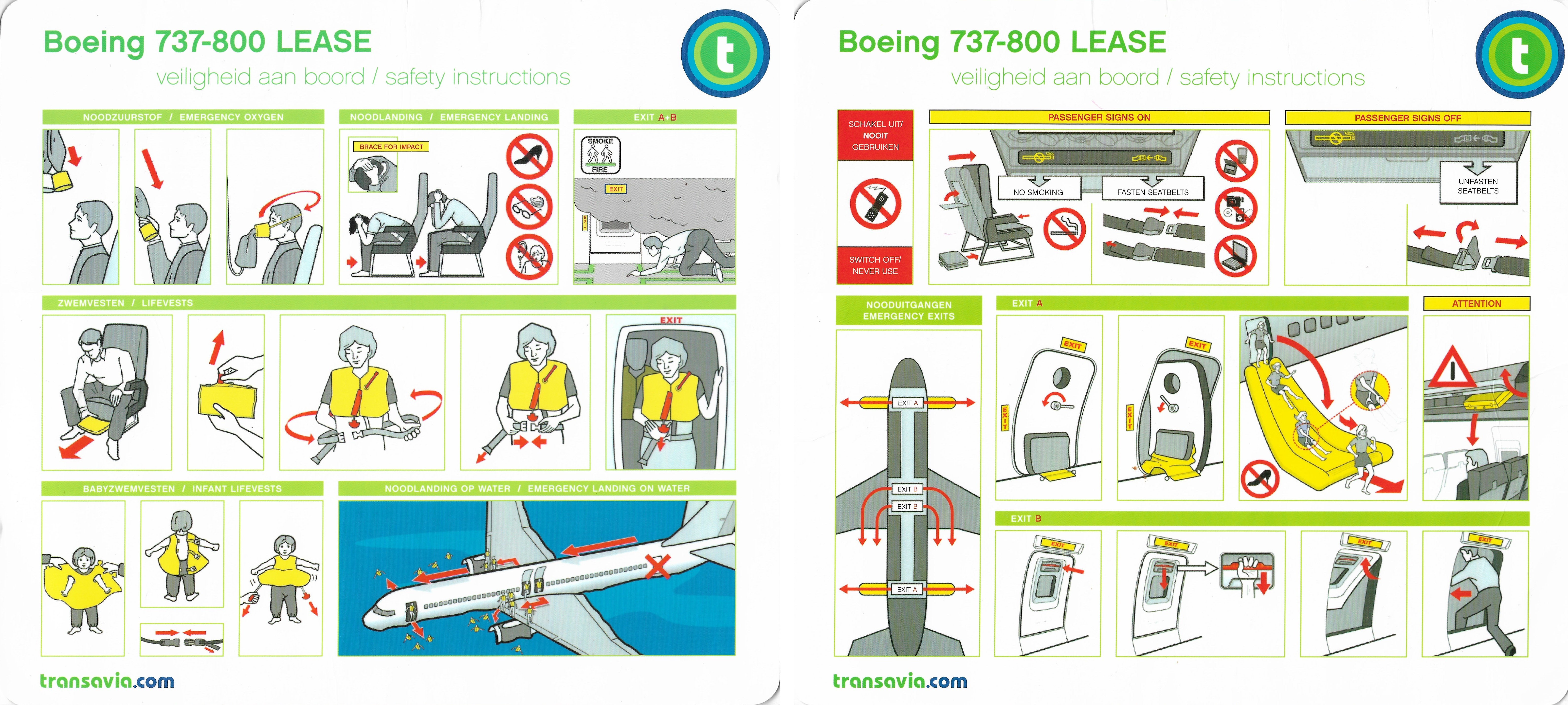 Remarks: transavia card with extra Air Paradise logo, Printed for Air Paradise International 737-800 wetlease (Petunjuk Keselamatan / Safety instructions)