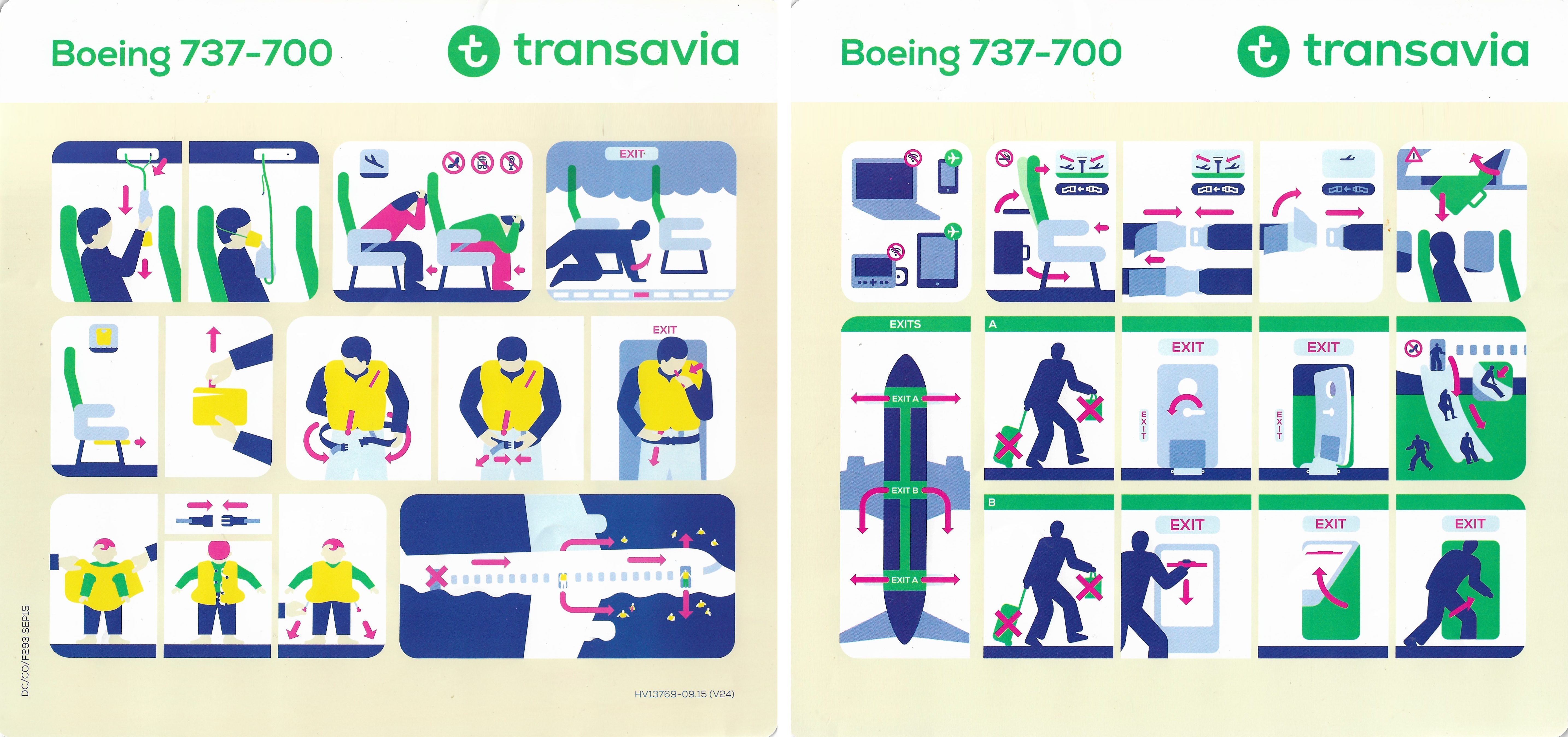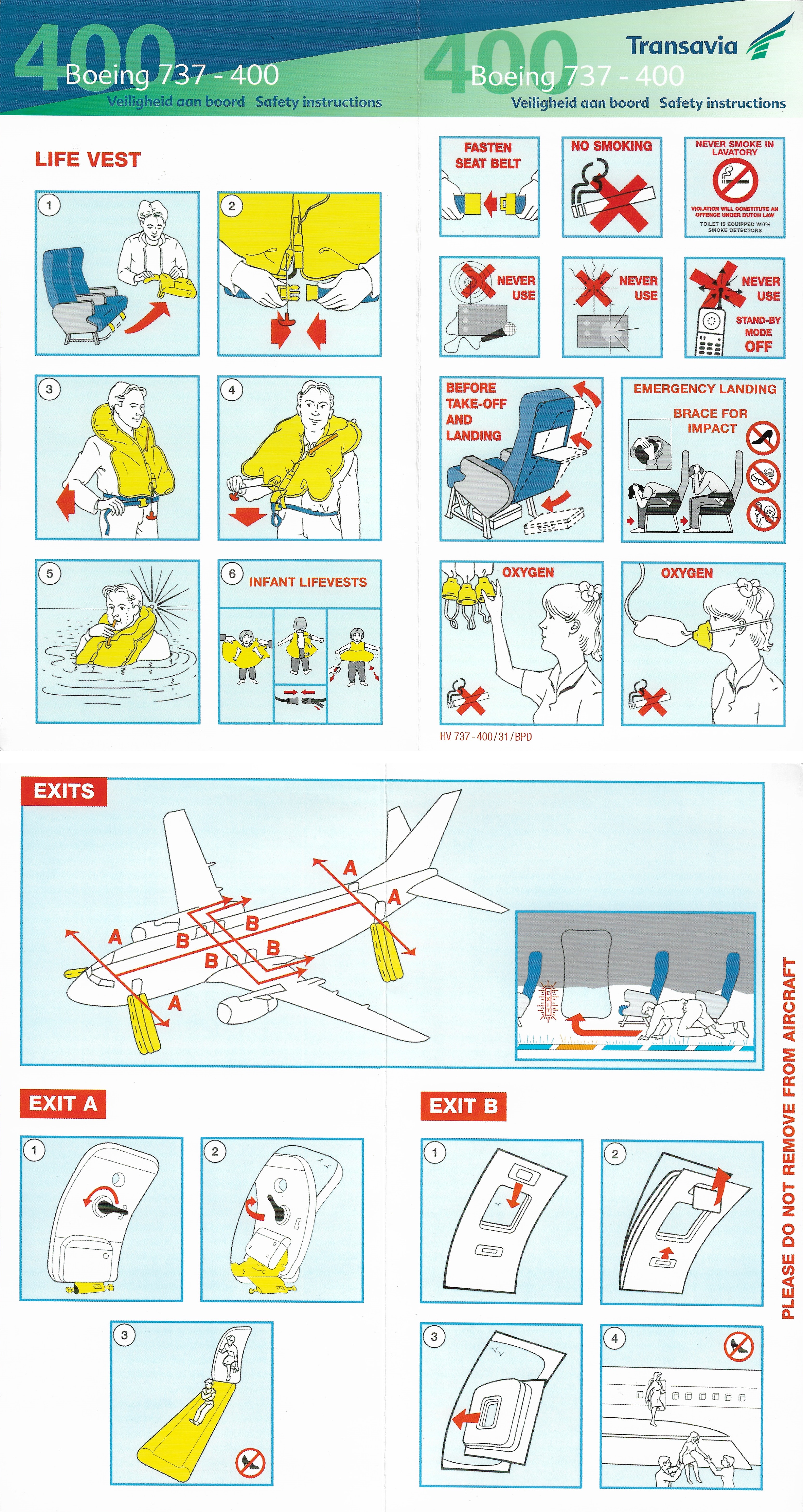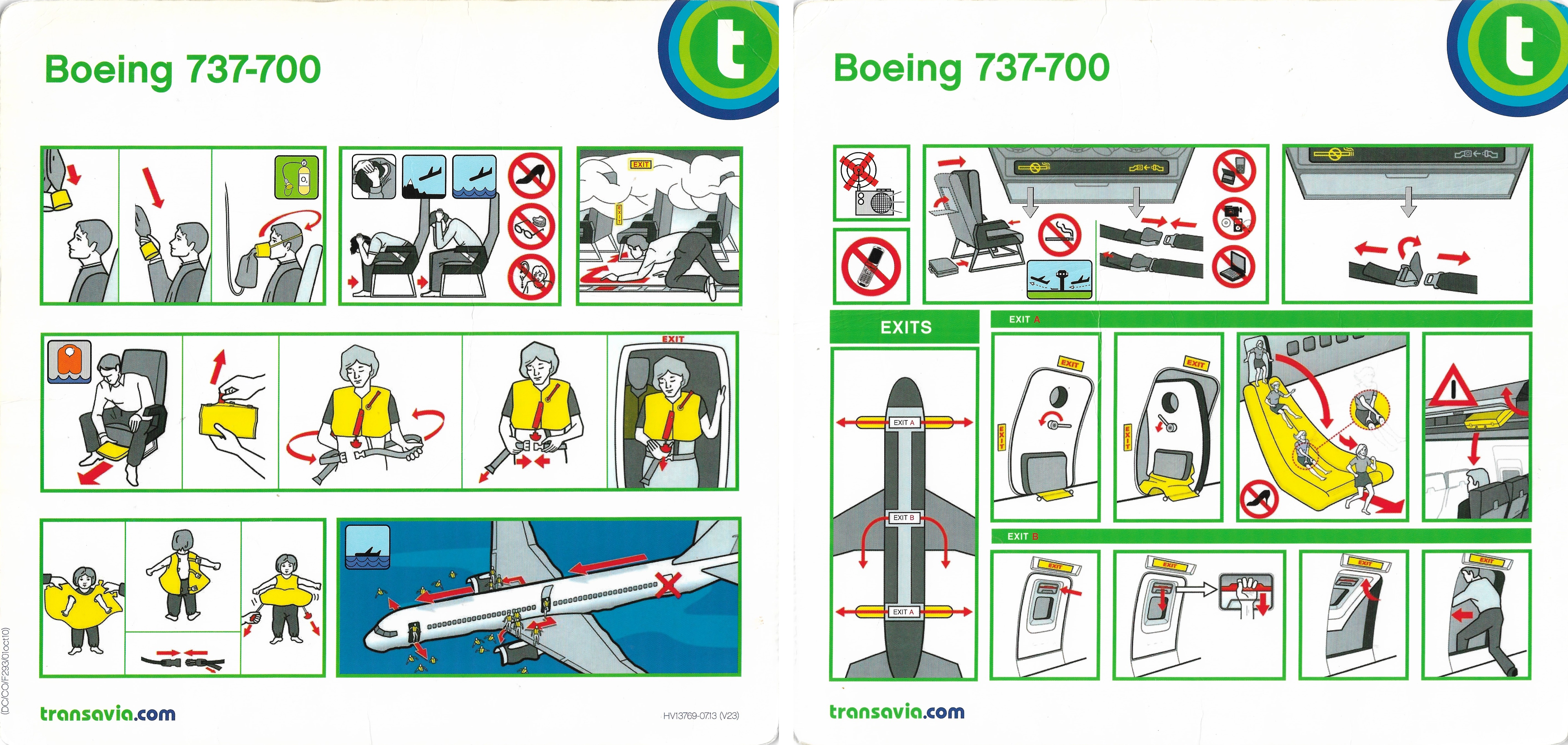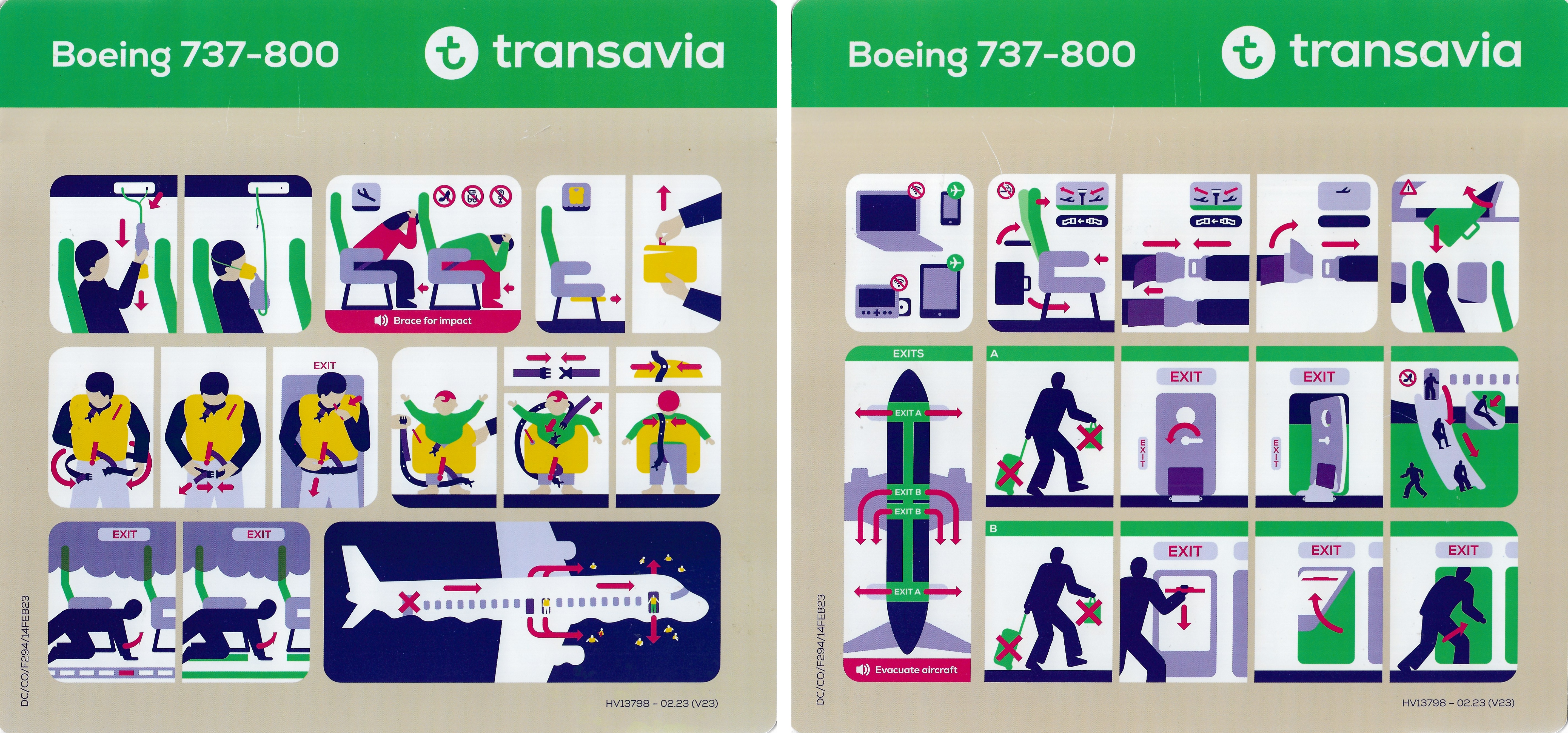 Remarks: transavia card with extra Air Paradise logo, Printed for Air Paradise International 737-800 wetlease (Petunjuk Keselamatan / Safety instructions)
