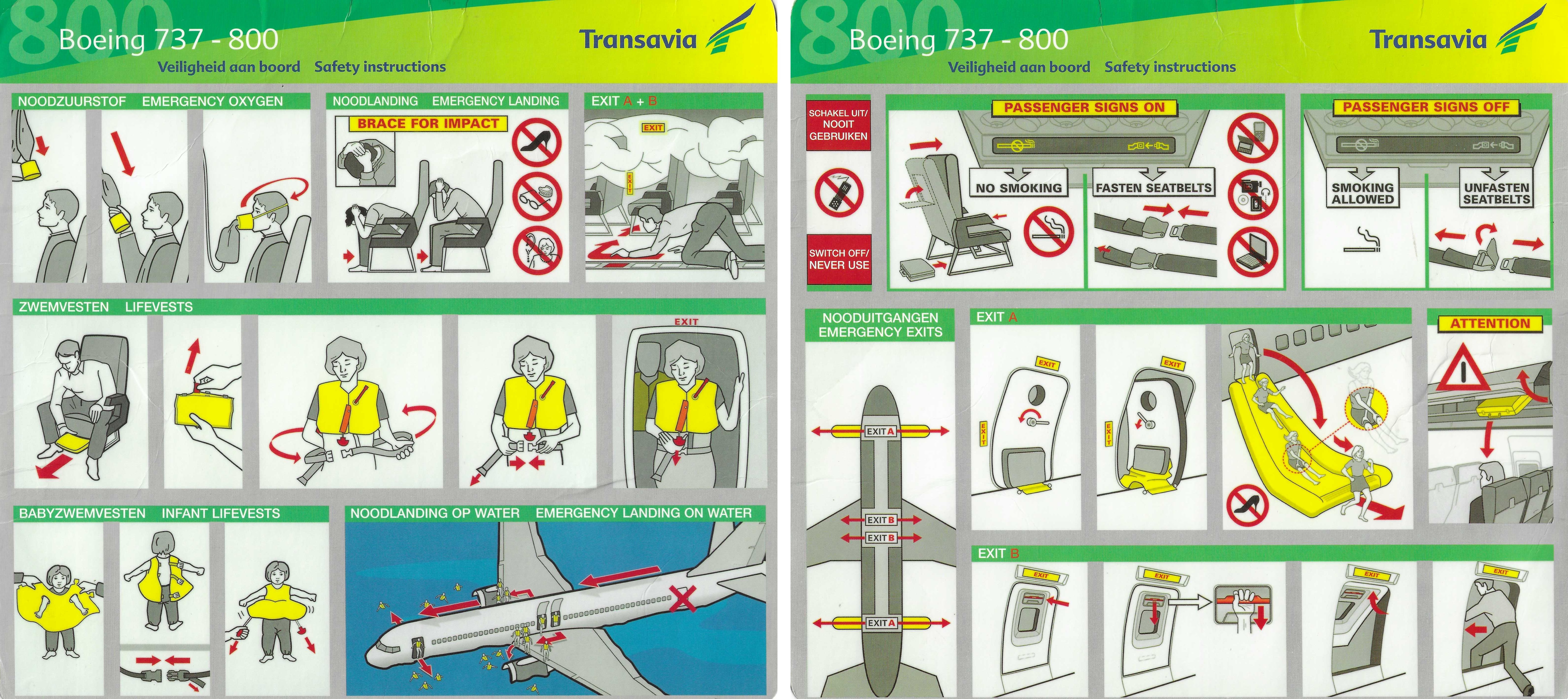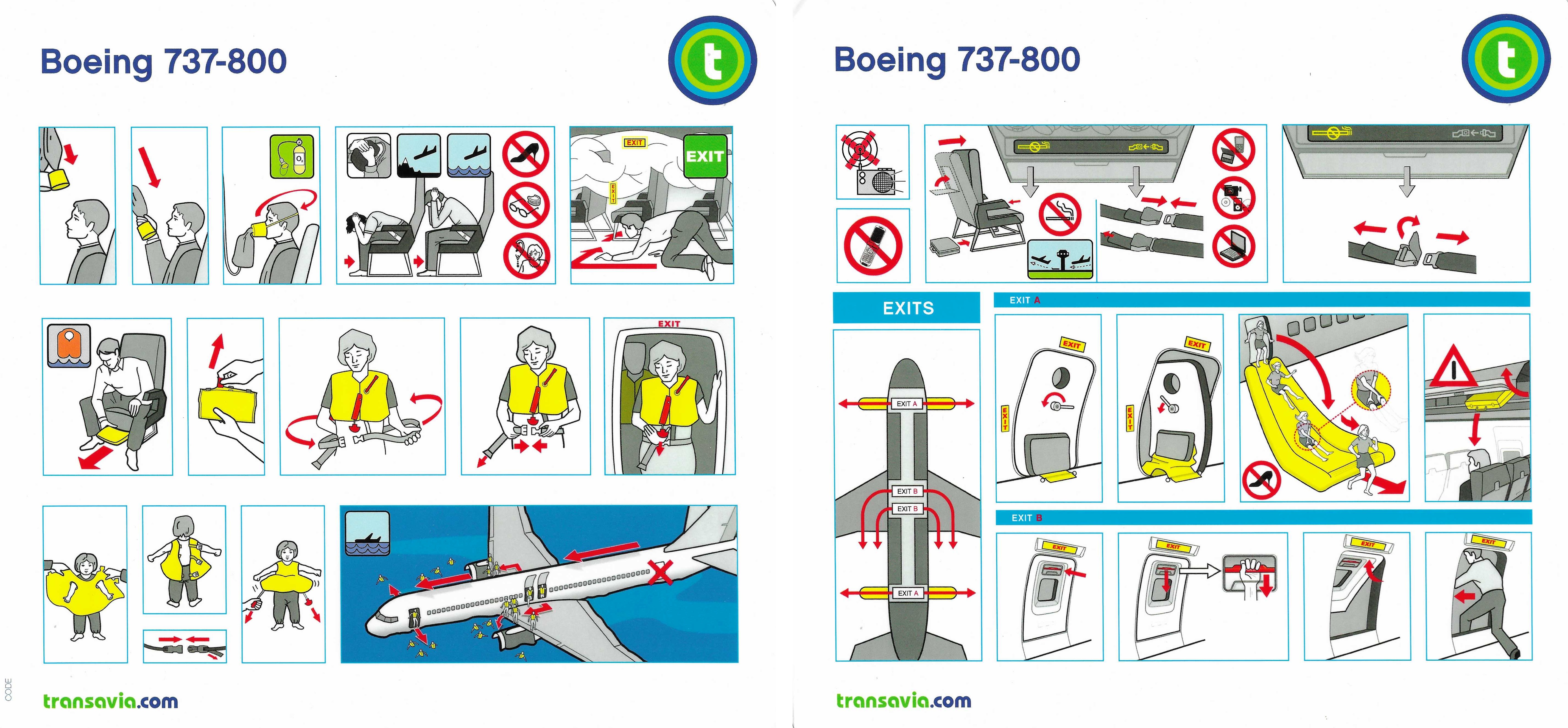 transavia Safety Instruction Cards Boeing 737