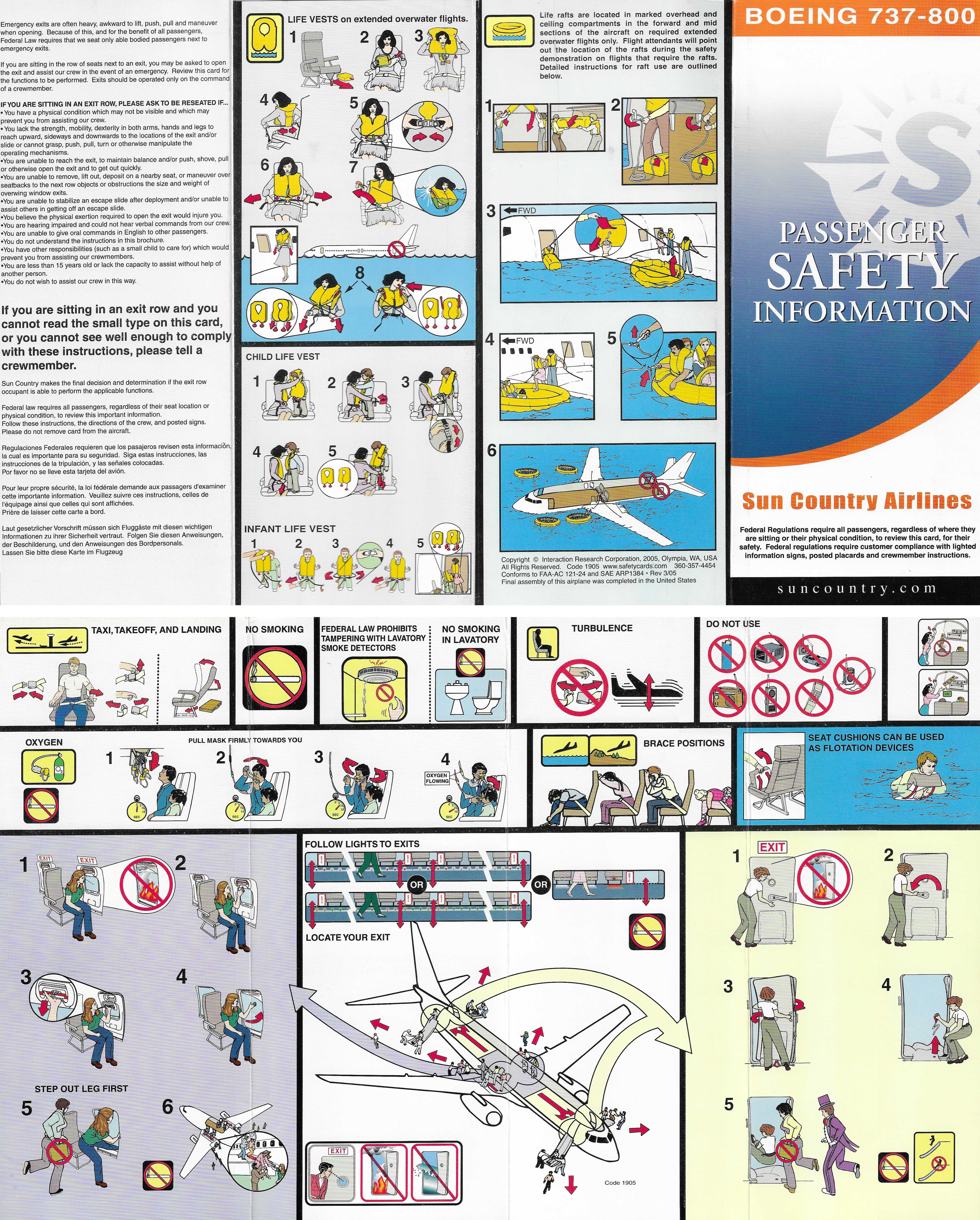 Remarks: Sun Country Airlines safety card used during the lease of the Sun Country Airlines Boeing 737-800 PH-HSU (N808SY) and PH-HSV (N807SY)